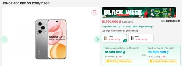 Sau thời gian ra mắt, HONOR 400 Pro đã giảm gần 2 triệu, xuống còn 16.790.000 đồng (12GB/512GB). Trong khi iPhone 17 cùng bộ nhớ có giá cao hơn tới 10 – 12 triệu đồng. Với thiết kế cao cấp, camera đỉnh, hiệu năng mạnh, pin khủng và AI toàn diện, HONOR 400 Pro thực sự là lựa chọn đáng tiền nhất cho những ai muốn smartphone mạnh nhưng ngân sách tiết kiệm.