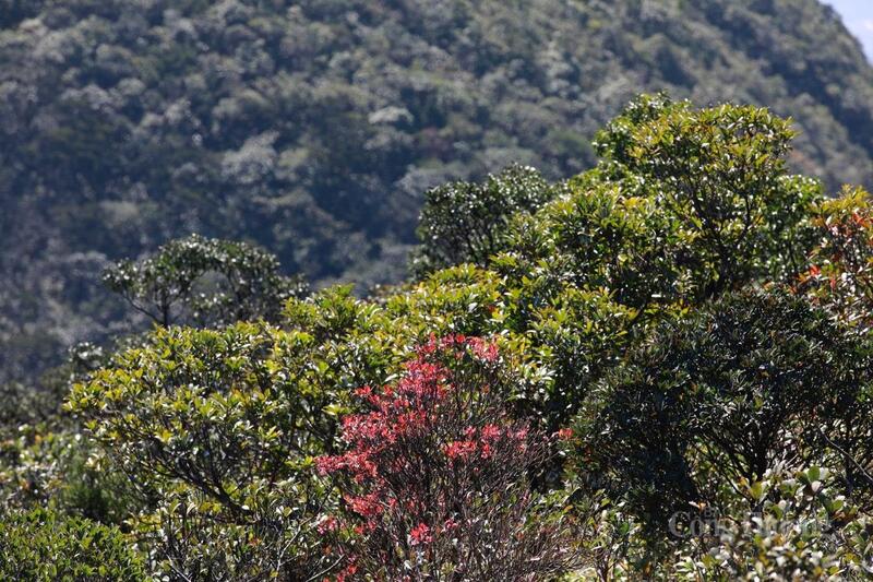 Hoa Đỗ Quyên, đào Chuông, chè và các cây bụi dạng thấp xuất hiện nhiều gần phía đỉnh ngọn núi.