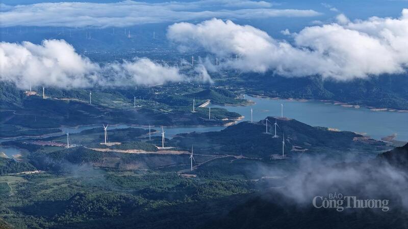 Từ đỉnh núi Pa Thiên ngắm nhìn cánh đồng điện gió tại xã Hướng Phùng.
