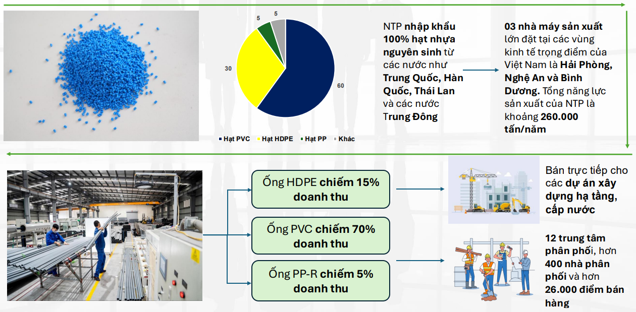 Nhìn vào cơ cấu sản phẩm, NTP sở hữu danh mục phong phú hơn, đặc biệt ở nhóm HDPE là loại ống phục vụ các dự án hạ tầng cấp nước, thoát nước và đầu tư công. HDPE chiếm khoảng 15% doanh thu của NTP.