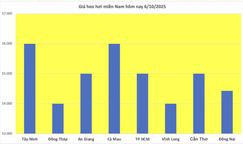 Cụ thể, Đồng Nai, Tây Ninh và Cà Mau đang mua bán giá cả heo hơi tại mức 56.000 đồng/kg, cao nhất cả nước. Heo hơi tại An Giang, TP. Hồ Chí Minh và Cần Thơ cùng giữ giá 55.000 đồng/kg. Trong khi đó, Vĩnh Long và Đồng Tháp cùng ghi nhận mức thấp nhất khu vực, giao dịch với giá 54.000 đồng/kg.
