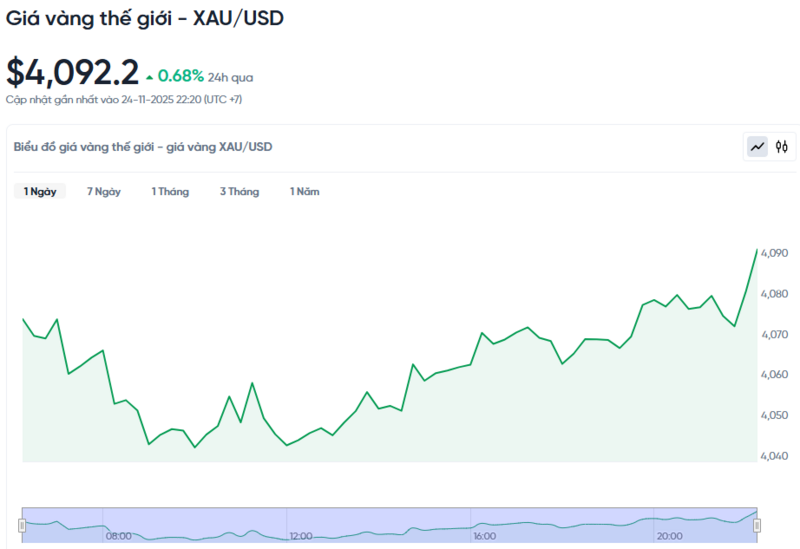Giá vàng thế giới hôm nay 25/11/2025 và biểu đồ biến động giá vàng thế giới 24h qua