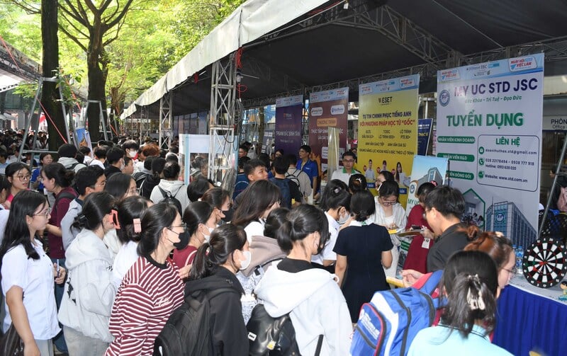 Ngày hội việc làm, cơ hội cho sinh viên, người lao động trực tiếp tiếp cận thị trường lao động và việc làm với nhiều ngành nghề. Ảnh: Minh Khuê.