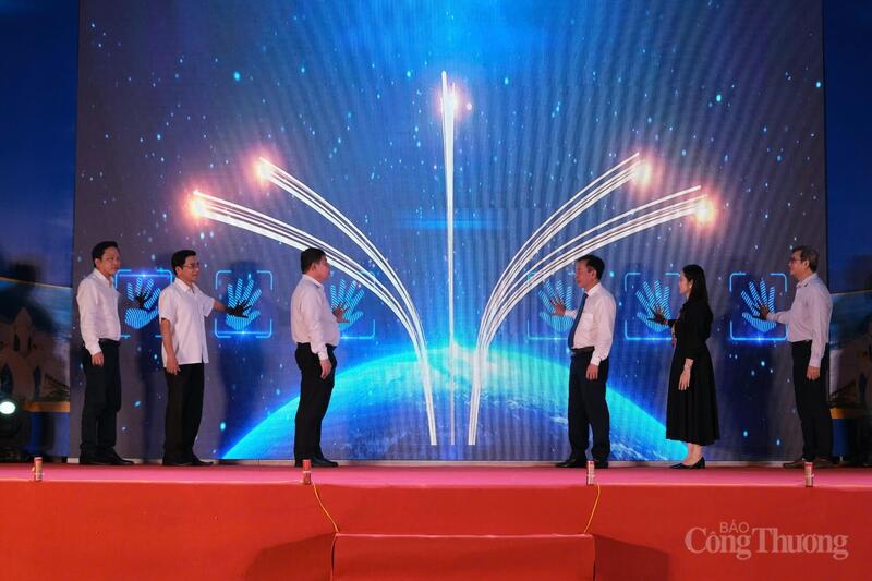 Các đại biểu nhấn nút Khai mạc Hội chợ Thương mại và kích cầu tiêu dùng tỉnh Khánh Hòa năm 2025. Ảnh: Lê Sơn