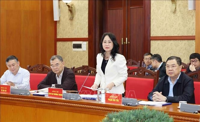Thường trực Ban Bí thư Trần Cẩm Tú chủ trì họp thường trực Tiểu ban Tổ chức phục vụ Đại hội XIV của Đảng. Ảnh: TTXVN