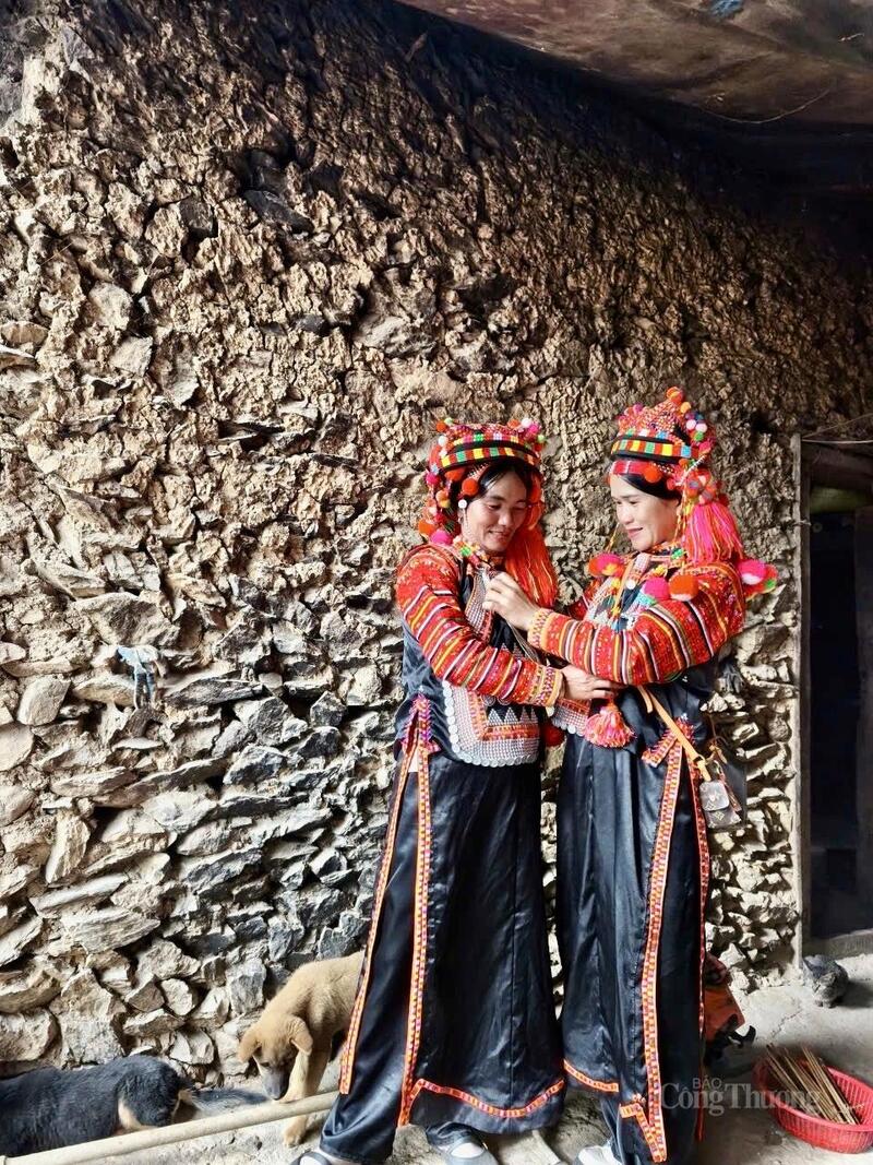 Trang phục của phụ nữ Hà Nhì rực rỡ sắc đỏ, tất cả đều được thêu tay tỉ mỉ. Khi ánh nắng đầu tiên soi xuống bản, sắc màu ấy như thắp sáng cả vùng núi biên cương, khiến du khách không khỏi say mê.