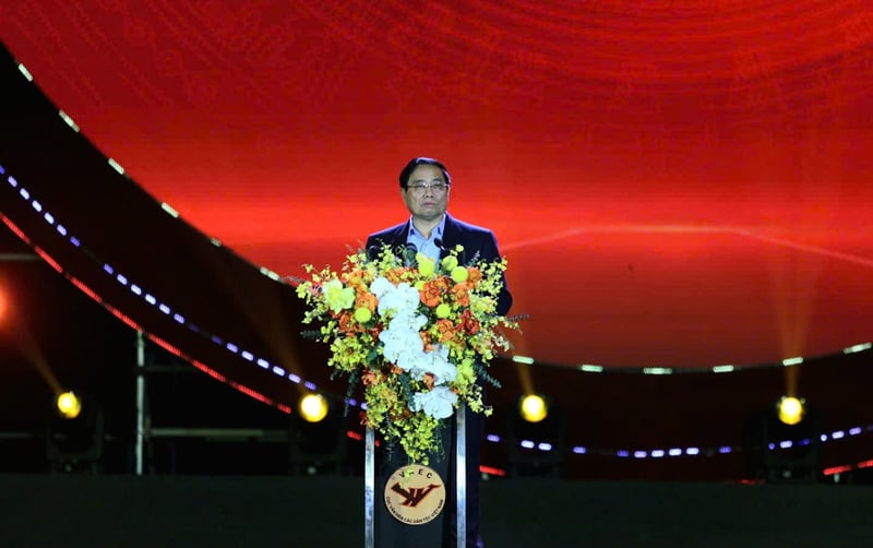 Thủ tướng Phạm Minh Chính phát biểu chỉ đạo tại lễ khai mạc “Tuần Đại đoàn kết các dân tộc - Di sản Văn hóa Việt Nam” 2025. Ảnh: Nam Nguyễn
