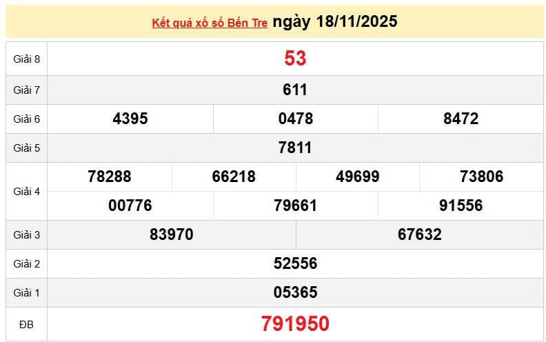 XSBTR 18/11, KQXSBTR 18/11. Xem lại kết quả xổ số Bến Tre ngày 18/11/2025