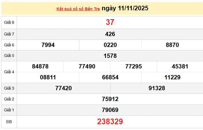 XSBTR 11/11, KQXSBTR 11/11. Xem lại kết quả xổ số Bến Tre ngày 11/11/2025