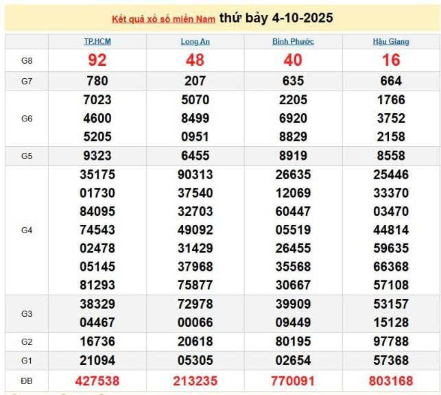 XSMN 4/10, KQXSMN 4/10. Xem lại kết quả xổ số miền Nam ngày 4/10/2025