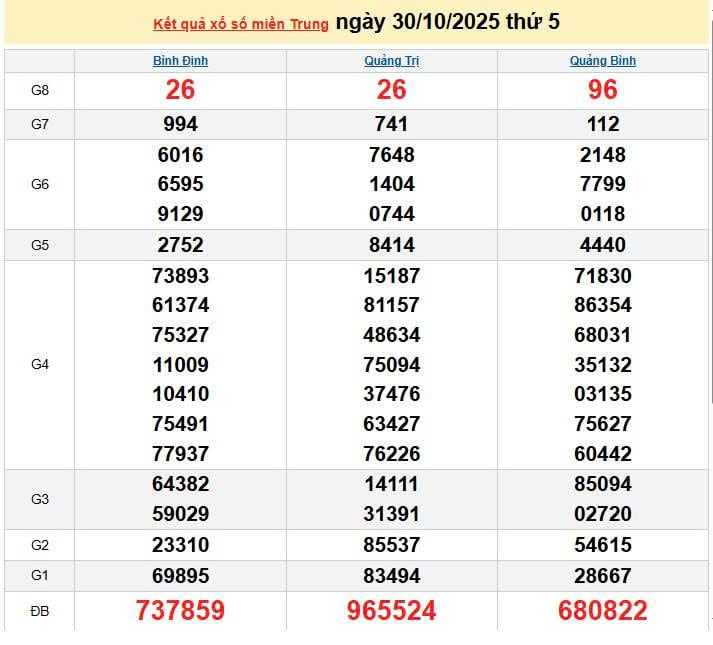 XSMT 30/10, KQXSMT 30/10. Xem lại kết quả xổ số miền Trung ngày 30/10/2025