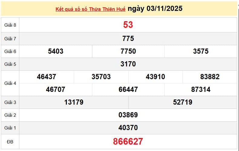 XSTTH 3/11, KQXSTTH 3/11. Xem lại kết quả xổ số Thừa Thiên Huế ngày 3/11/2025