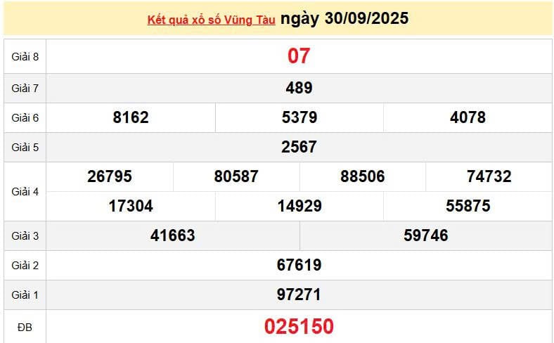 XSVT 30/9 , KQXSVT 30/9. Xem lại kết quả xổ số Vũng Tàu ngày 30/9/2025
