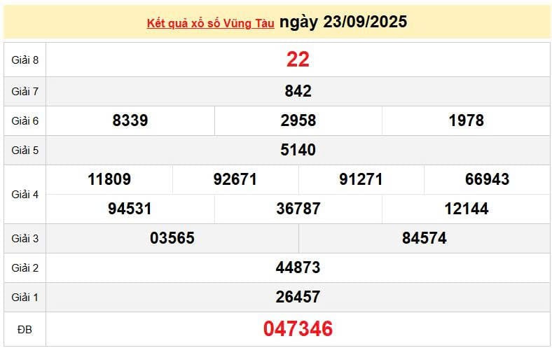 XSVT 23/9 , KQXSVT 23/9. Xem lại kết quả xổ số Vũng Tàu ngày 23/9/2025